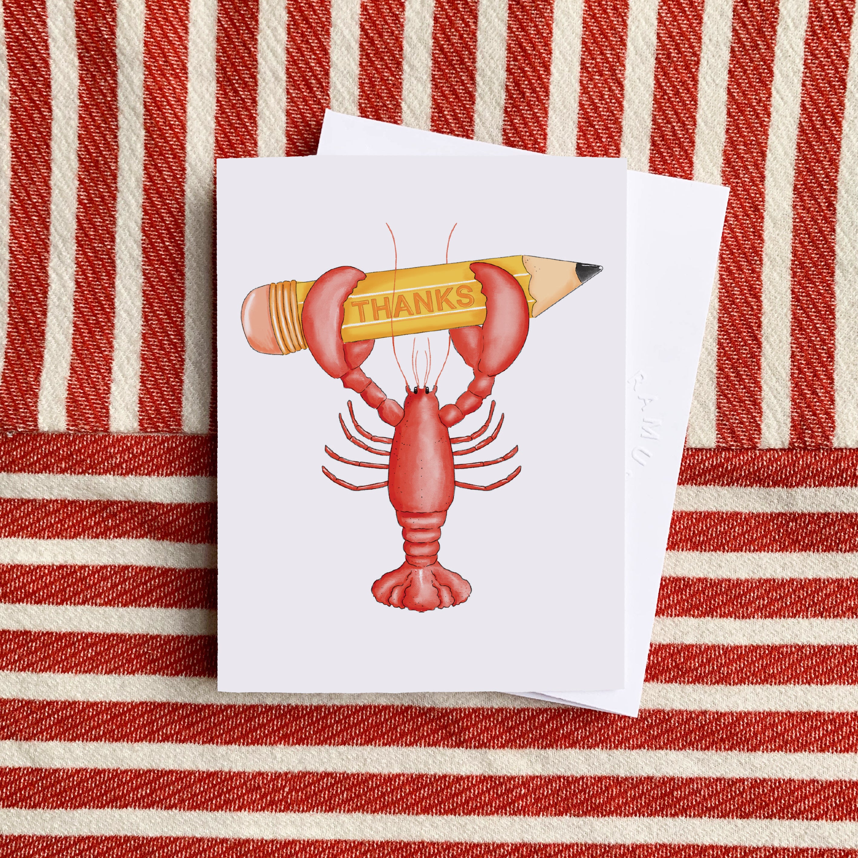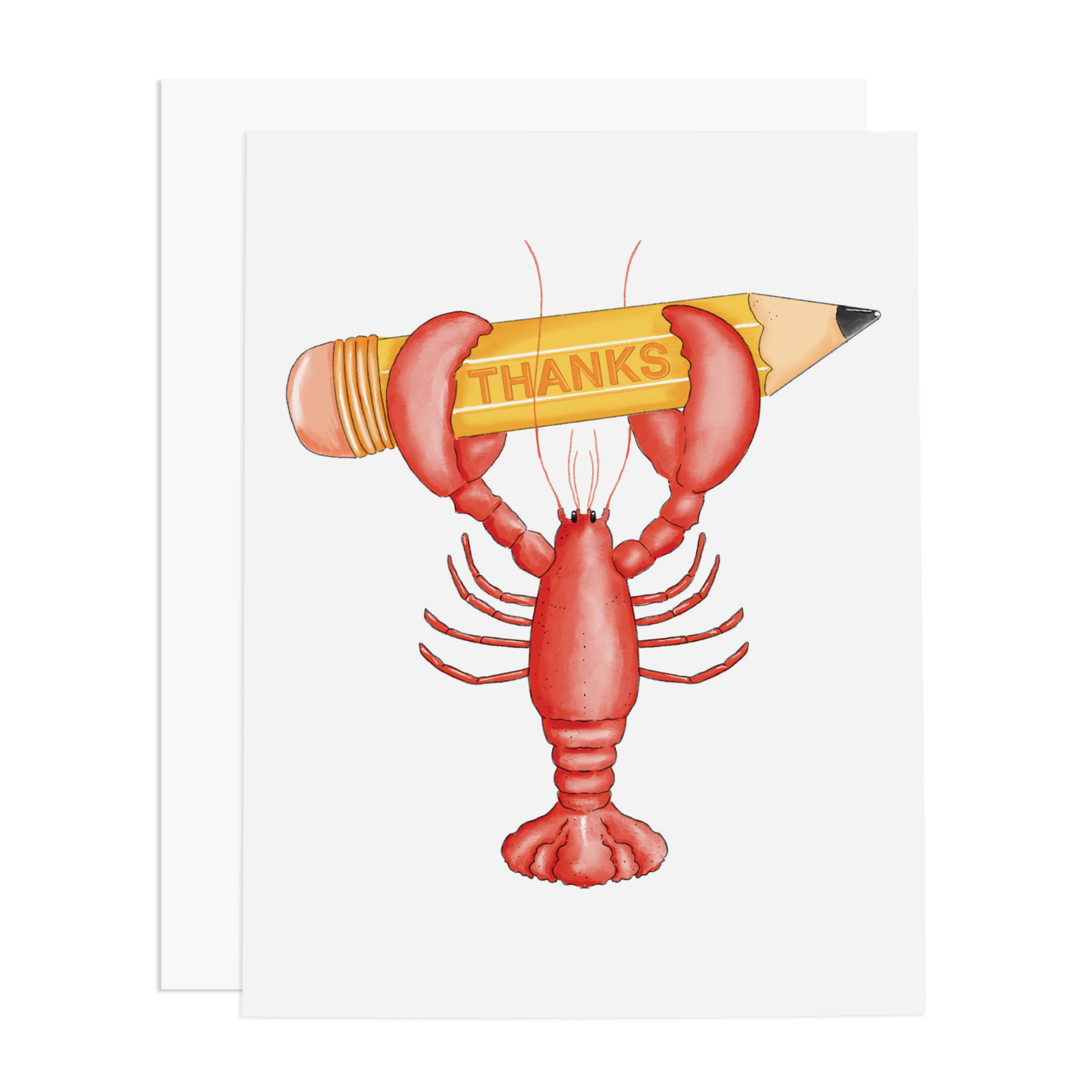 With a nod to coastal charm and everyday creativity, this lobster w/ pencil design makes a distinctive and thoughtful thank you card.