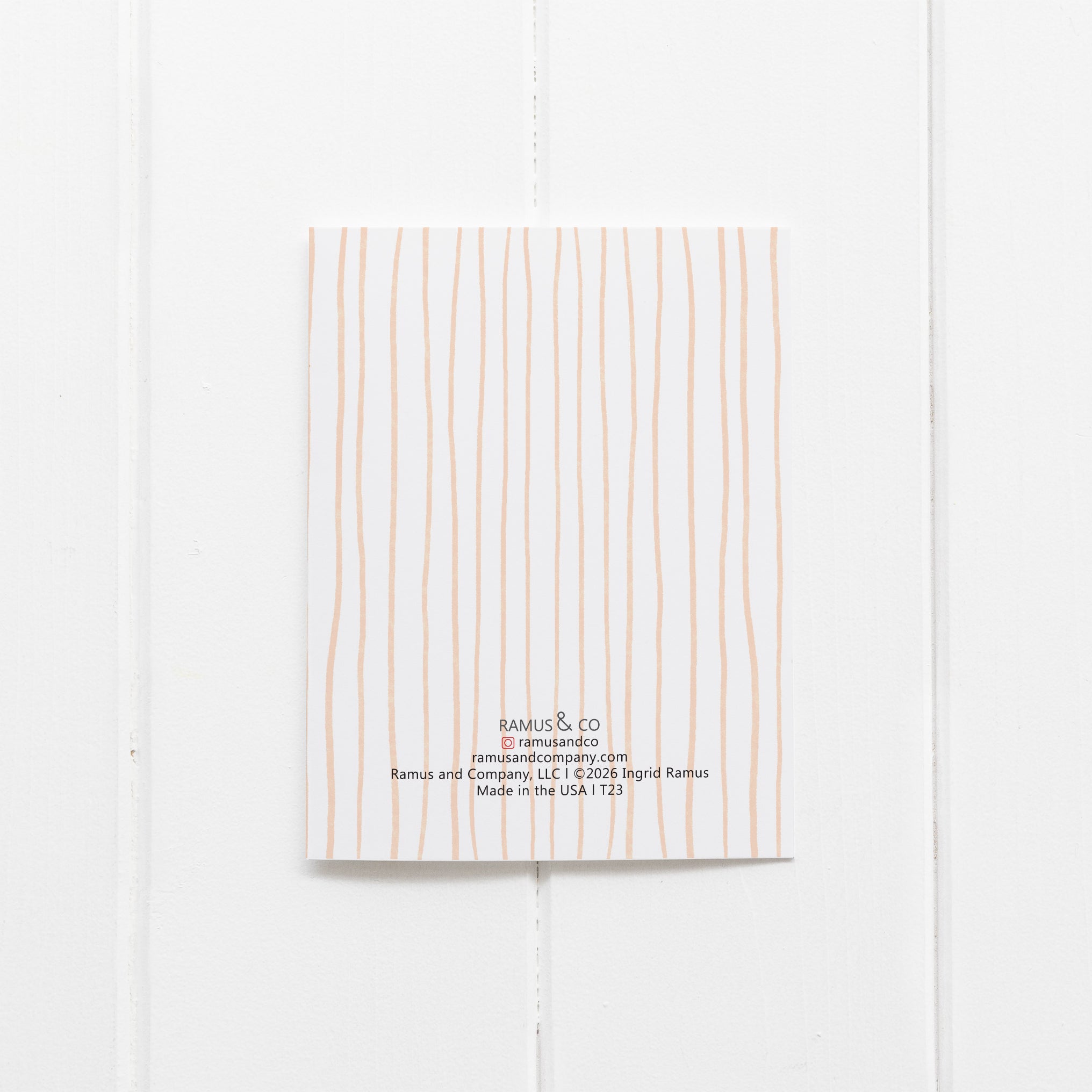 All our cards are printed on SFI and FSC certified paper. Designed and printed in the USA. Beautiful bright white cover paper, blank inside, includes an envelope with peel & stick.