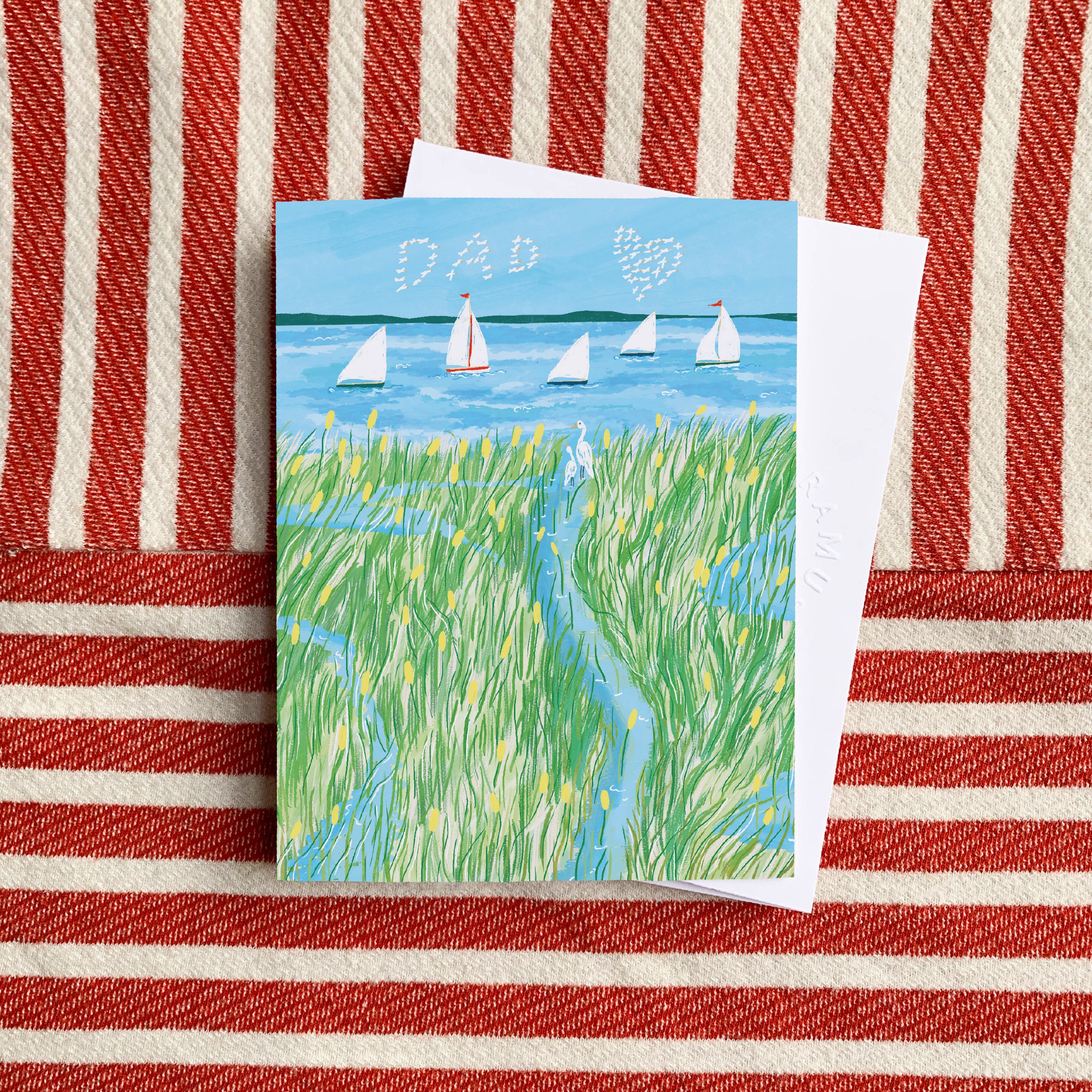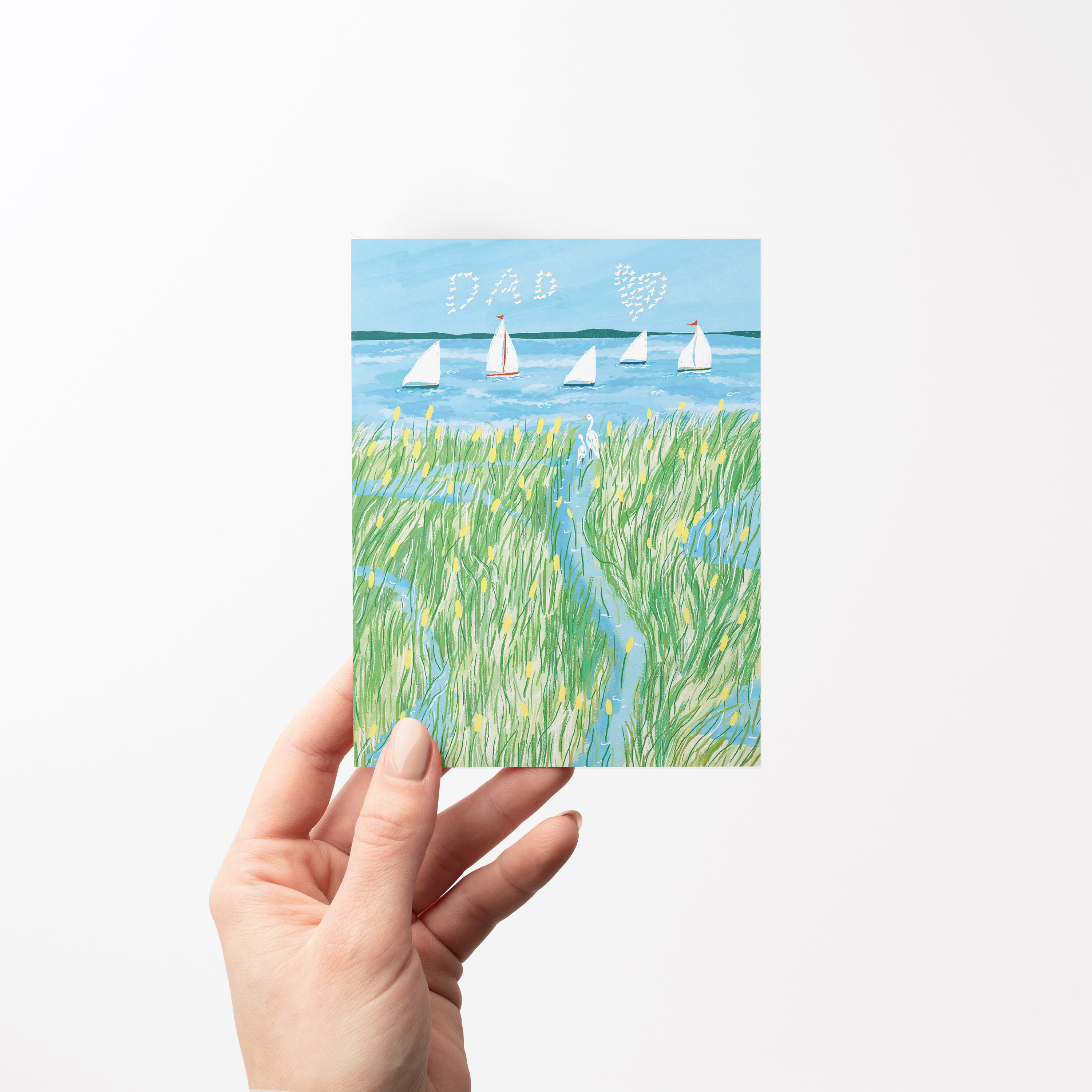 Celebrate Dad with this charming marsh scene greeting card. Featuring peaceful coastal birds and boats in their natural habitat, it’s a thoughtful choice for Father’s Day, birthdays, or any moment you want to show appreciation.