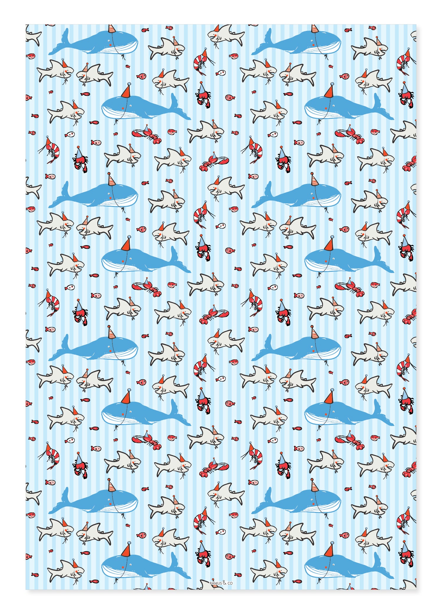 Gift wrap that ignites twinkles in eyes. Deep Sea Party gift wrap is a classic design for a nautical or coastal themed party. Proudly set your gift on the gift table, dress your next gift in Ramus & Co.