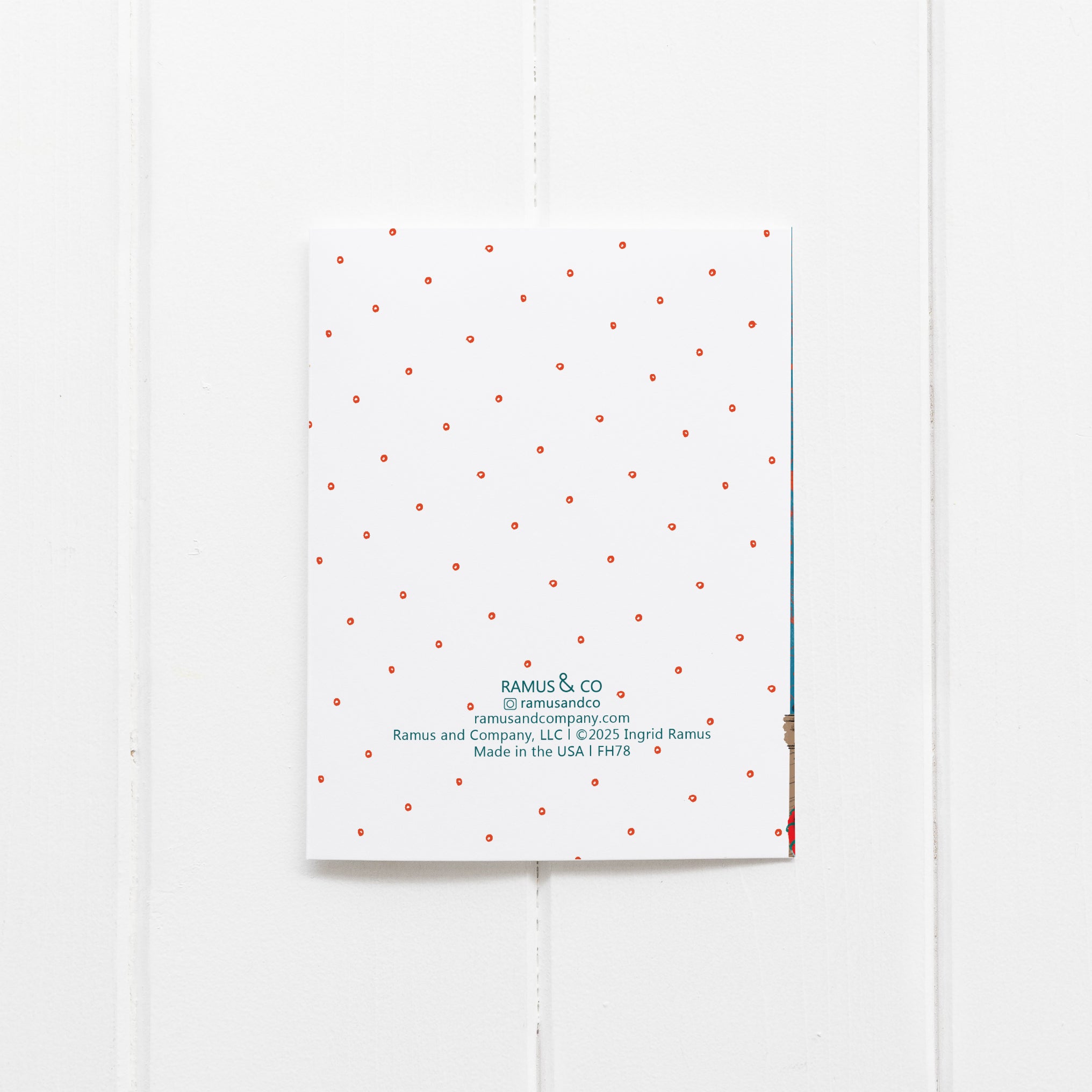 All our cards are printed on SFI and FSC certified paper. Beautiful bright white cover paper, blank inside, includes an envelope with peel & stick.
