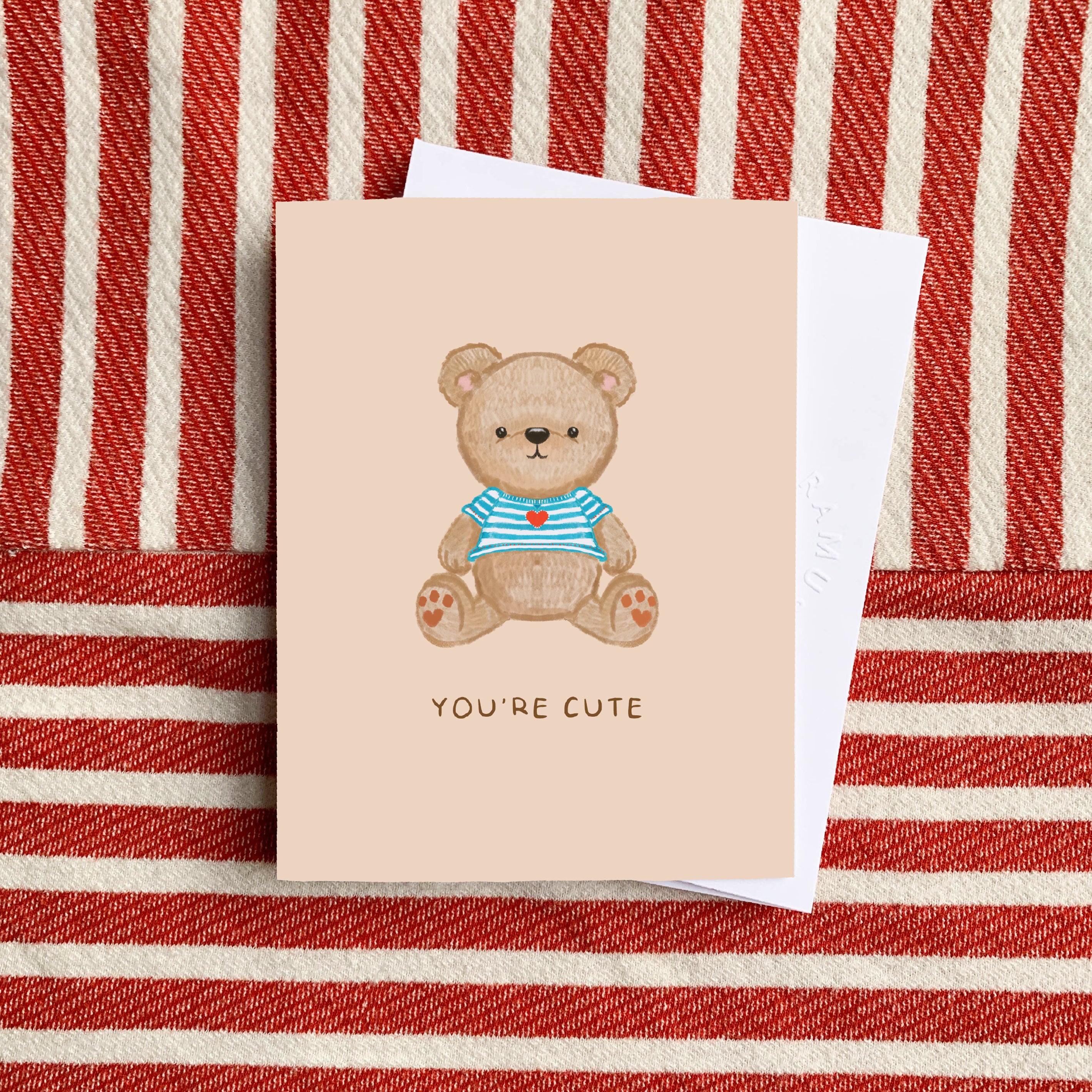 "You're Cute" ...Say it the adorable way! This card features a charming little teddy bear. Perfect for Valentine’s Day, lovers, crushes, friends, or anyone who makes you smile.